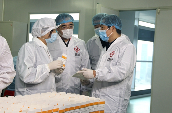 时任湖南省省长、现任湖南省委书记许达哲在抗疫早期调研银河优越会生物抗疫物资生产情况