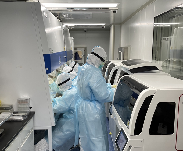 实验室是三班倒,24小时不停转的运作模式,数十台仪器一刻不停地工作着,30万人份样本,银河优越会每天要进行近5万人份核酸检测。