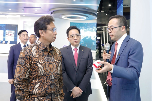 11月23日,印尼卫生部部长布迪·古纳迪·萨迪金先生,国家海洋与投资统筹部长特别顾问、中国印尼高级别对话合作机制副秘书长林优娜(Jona Widhagdo Putri)女士带领访问团一行到访银河优越会生物上海产业园。银河优越会生物董事长戴立忠、执行总经理彭铸、高级副总裁兼首席技术官殷鹏、副总经理朱健,君联资本执行董事戚飞等陪同参访。
