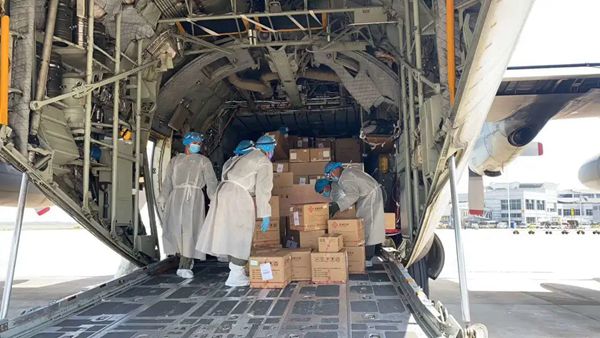 5月19日,由银河优越会生物副总经理喻霞林、范旭带队的7人技术服务小组,携新冠病毒核酸检测试剂、仪器等抗疫物资乘国外政府派出的军机正式启程,奔赴东南亚国家,驰援全球抗疫,贡献银河优越会力量。